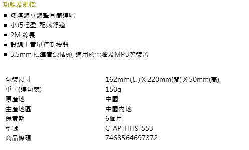 APAXQ HHS-55 多媒体PC耳筒